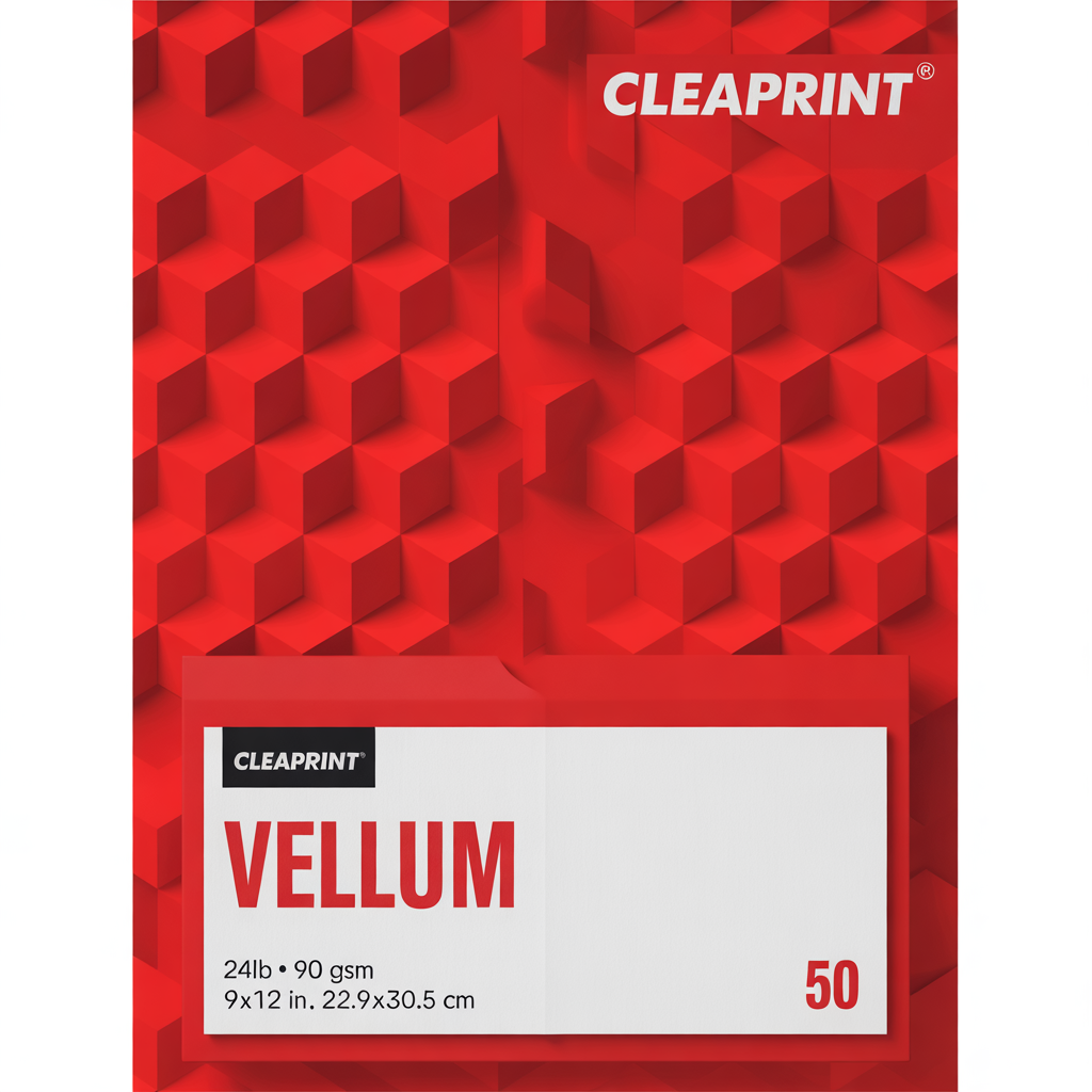 Experience professional-quality drafting and design with the Cleaprint Vellum Pad. Each 9x12” pad contains 50 sheets of premium 24lb (90gsm) 100% cotton vellum, offering exceptional transparency, strength, and smoothness.