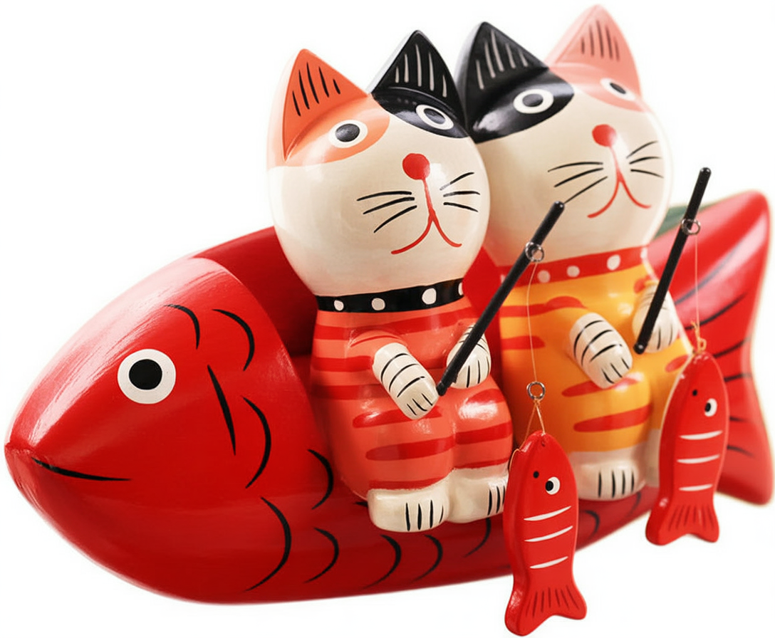 Bring warmth and charm to your space with this Japanese-style Wooden Couple Cat Figurine Set. Handcrafted with care, these adorable cat figures symbolize love, harmony, and good fortune.